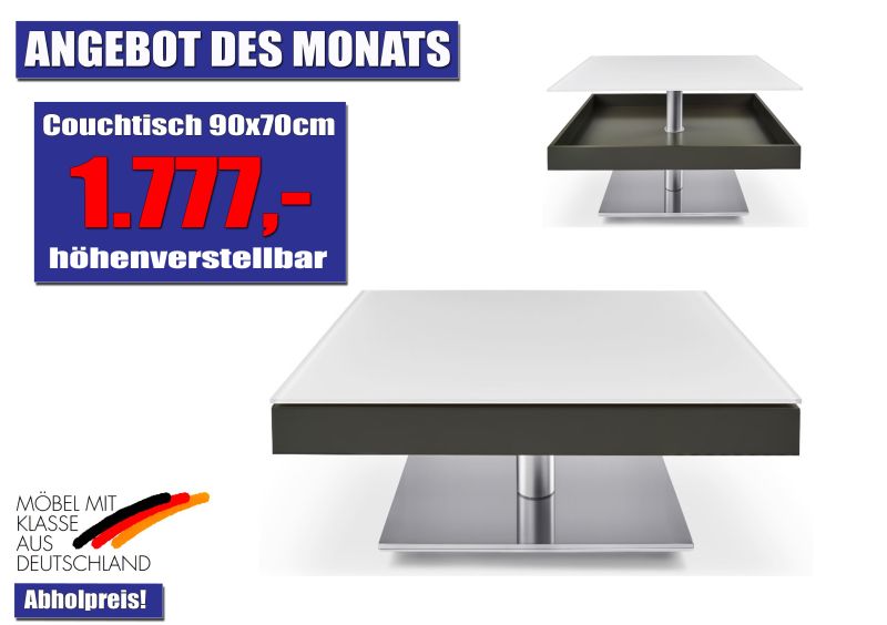 Beim Ronald Schmitt K468 Janus lässt sich durch die Duo-Höhenverstellung die Tischplatte anheben und öffnet einen darunter liegenden großen Stauraum, der Fernbedienungen, Brillen, Tablets etc. aufnehmen kann, alles was man am Couchtisch mal so braucht, aber auch schnell wieder aufgeräumt haben möchte. Die Höhenverstellung steht stabil, sodass man an dem Tisch auch gut Essen oder Arbeiten kann, mit den optionalen Rollen kann man den Tisch bequem verschieben diesen Monat mit Glas- oder Glaskeramik-Tischplatte nur 1.777€ Abholpreis frei 41515 Grevenbroich. Deutschlandweiter Versand möglich +89€