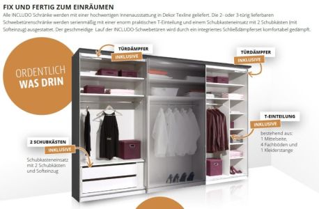 Ein Schrank hin - alles schon drin! Der Includoschrank von Stauf macht Ihnen die Entscheidung leicht, denn die Innenausstattung ist schon mit drin!