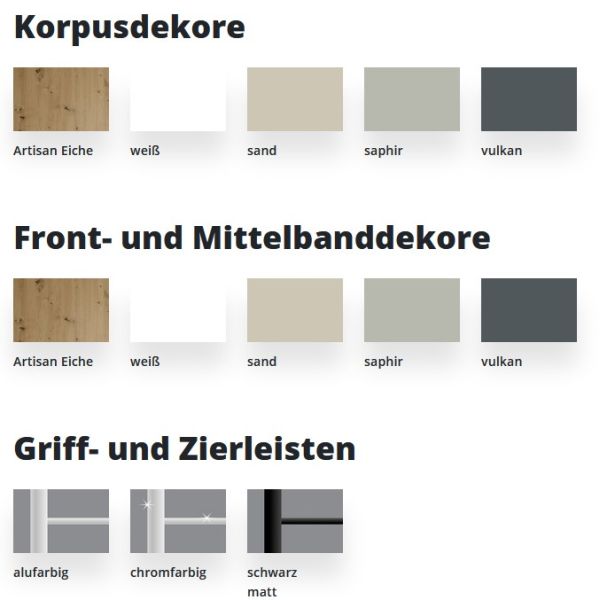- Front in sechs matten Dekoren oder vier Glasvarianten