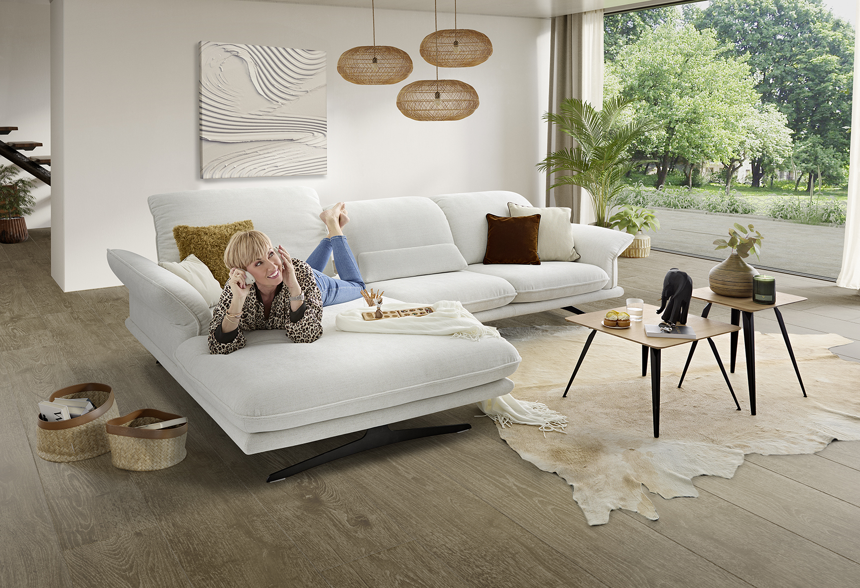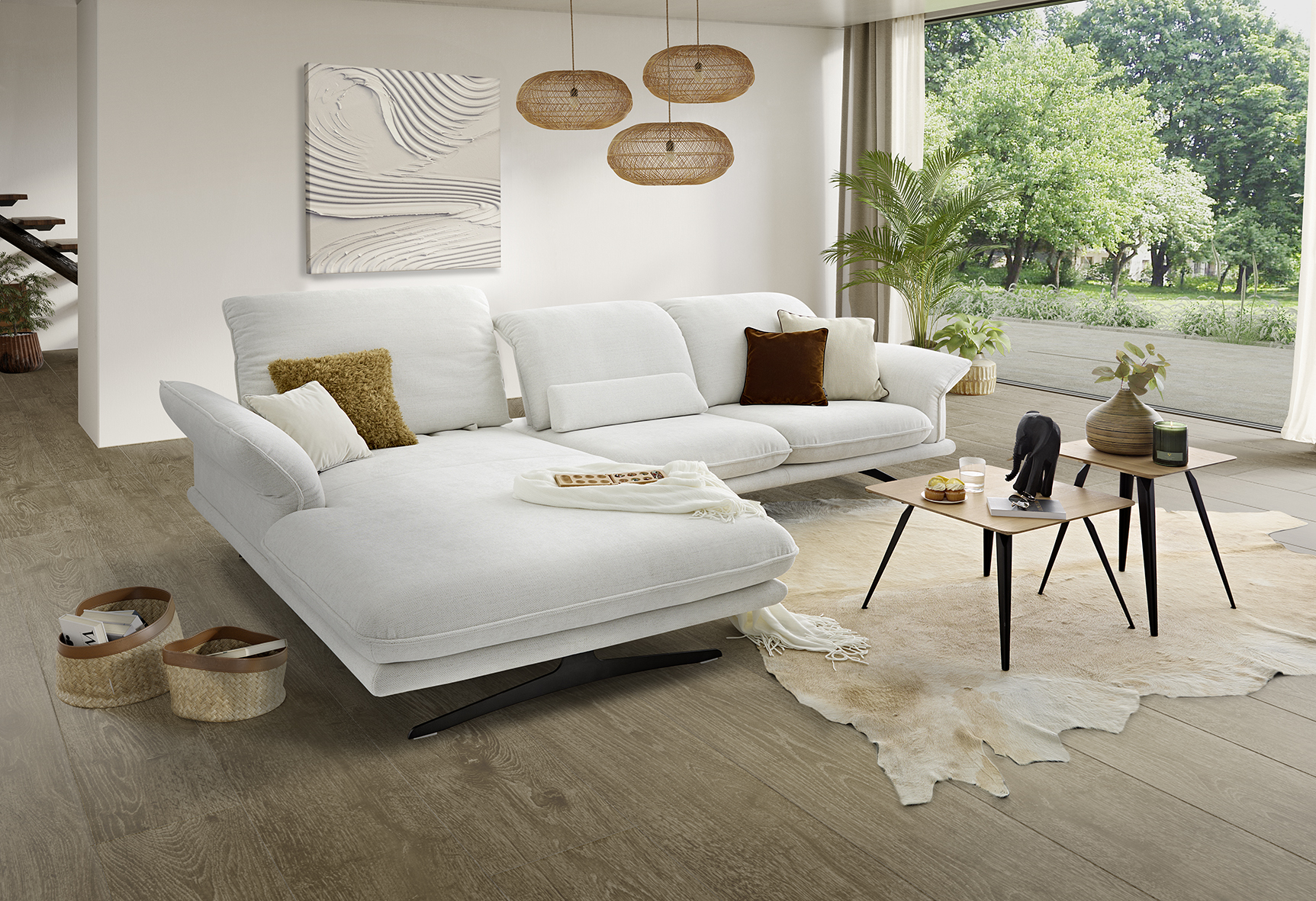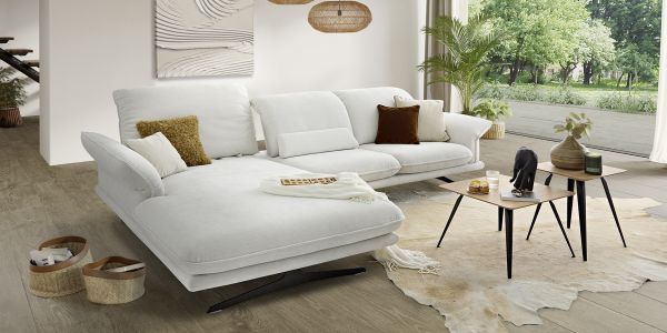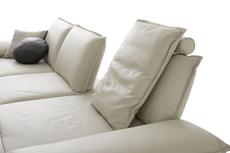Einfach sitzen bleiben möchte man auf diesem ausladend bequemen Sofa- und Anreihprogramm. Reichlich Platz, auch für zwei, schenkt der extrabreite Longchair. Mit dem motorischen Sitzauszug, der bequemen Kopfstützenverstellung und der Wahl aus zwei Fuß-/Sitzhöhen gibt es weitere einladende Entspannungsvarianten.